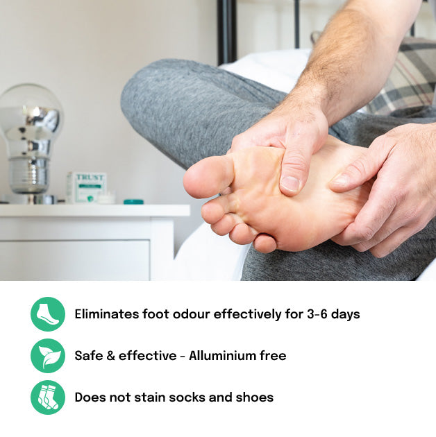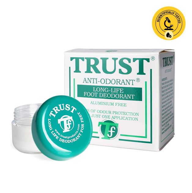 Apply Trust to your feet just once every few days and enjoy all your usual activities, including sports, remaining free of disturbing foot odour. Trust can be used in all conditions, such as in hot and humid or dry weather. It is suitable for everyone as it does not contain harsh chemicals, and will not irritate the skin. Trust remains effective even after showering. Buy TRUST for yourself or for your loved ones.