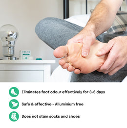 Scientifically tested and proven to eliminate foot odour effectively for 3-6 days with a single application. Sold in the UK at Boots and online for over 25 years.